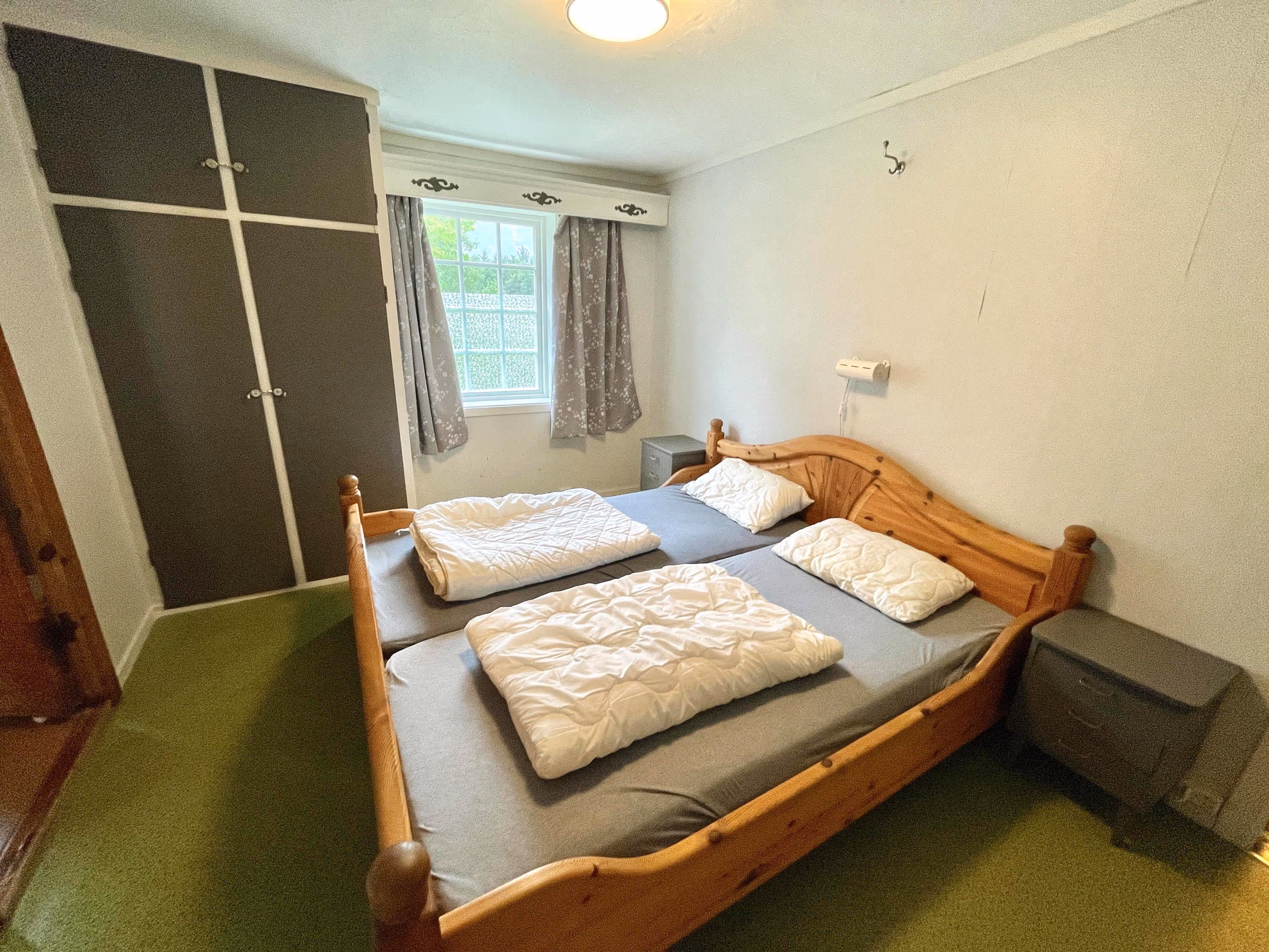 Here is a double bed in one bedroom, stove with Wifi / TV and fully equipped kitchen. A private fenced patio away from the campsite itself. Simple standard. Washer / dryer in the common areas.