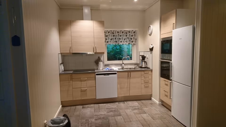 Fullt utstyrt kjøkken, bad med dusj, stove med Wifi/TV og uteområde på stor veranda.